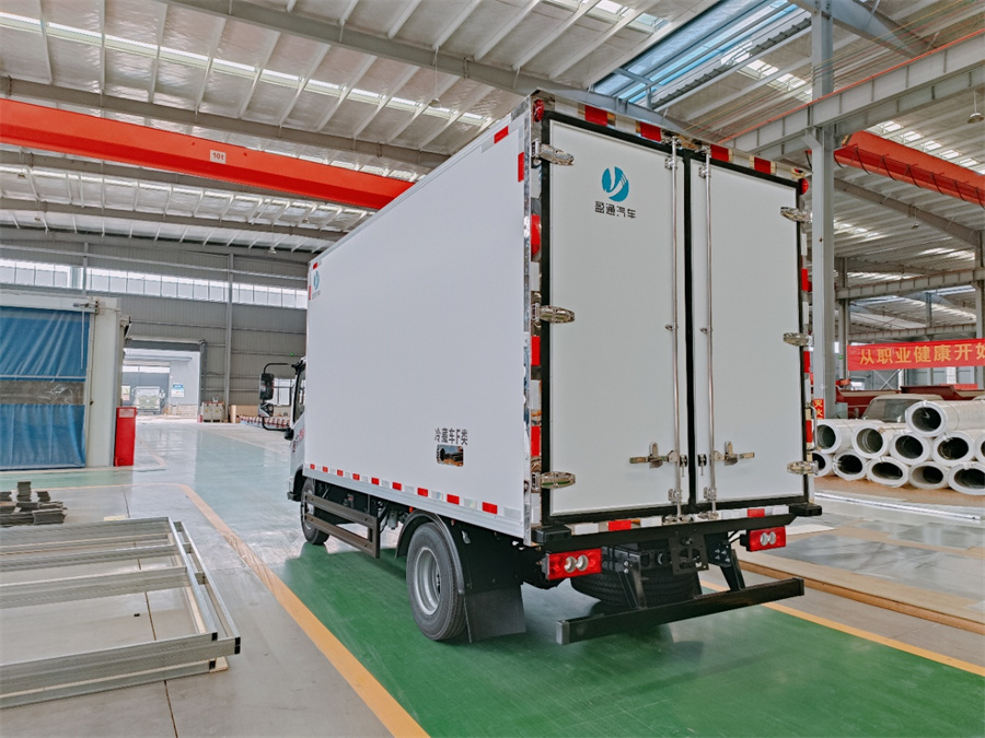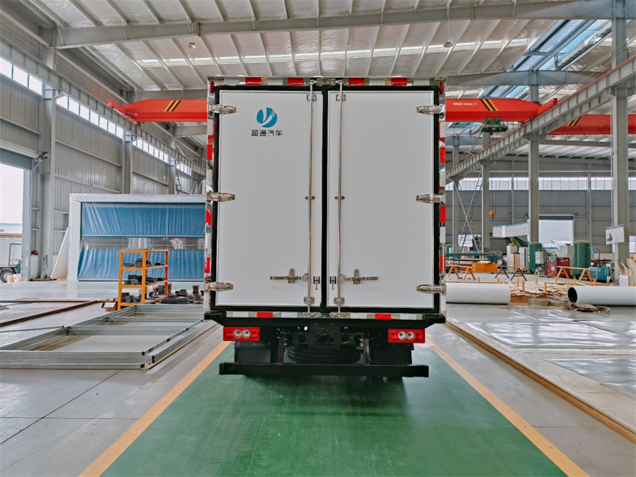 廂體采用內外玻璃鋼材料制作,中間夾層為高密度保溫材料,用真空復合一次成型,表面光潔平整,強度高,使用壽命長(cháng),廂體邊緣采用優(yōu)質(zhì)鋁合金包邊和專(zhuān)用密封膠處理,具有重量輕、保溫、密封效果好等特點(diǎn)。門(mén)框鎖件為不銹鋼材質(zhì),門(mén)四周用一次成型密封條密封,廂體外形平整美觀(guān),車(chē)廂頂部加以雨檐,避免下雨天雨水對車(chē)廂的浸泡,延長(cháng)廂體使用壽命,車(chē)廂內配有人性化照明系統。穩固性和氣密性是普通冷藏車(chē)廂體不可比的,并且具有質(zhì)量輕,抗沖擊力強,無(wú)滲透等優(yōu)點(diǎn)。配備國產(chǎn)580制冷機組。