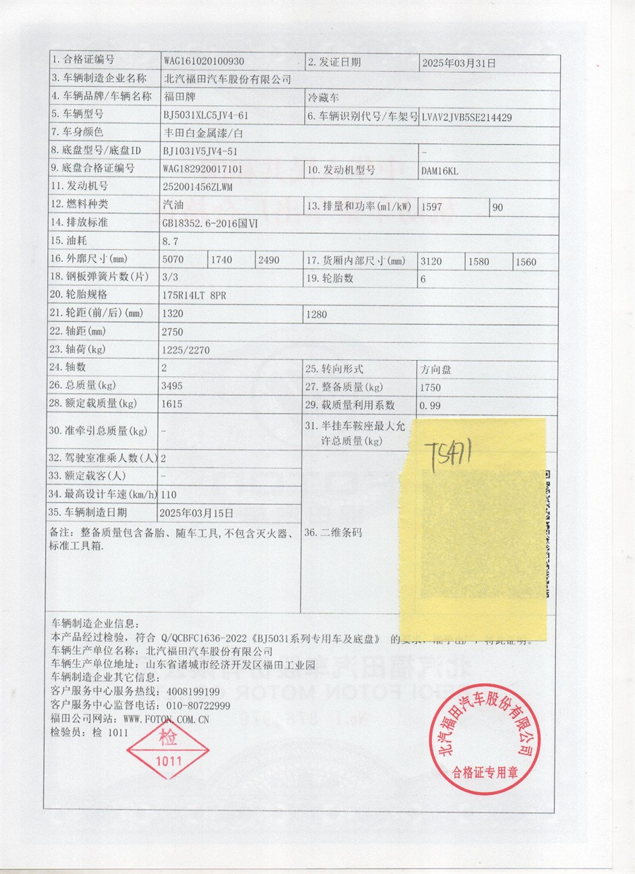 廂體采用內外玻璃鋼板材制作,中間填充8cm 厚高密度保溫材料,底板選用加厚型防滑花紋鋁板,鋁合金型材包邊,不銹鋼門(mén)鎖件,后雙開(kāi)門(mén),帶單側開(kāi)門(mén),匹配零下15度制冷機組。其余按冷藏車(chē)標配制作。提供機動(dòng)車(chē)上戶(hù)手續(機動(dòng)車(chē)合格證、上戶(hù)發(fā)票、車(chē)輛保修手冊、隨車(chē)工具)。